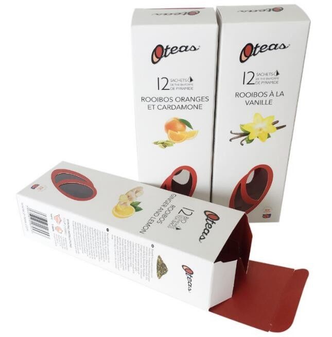 উভয় দিকে স্বচ্ছ পিভিসি উইন্ডো টি চা প্যাকিং বক্স সাদা কার্ড পেপার অফসেট প্রিন্টিং