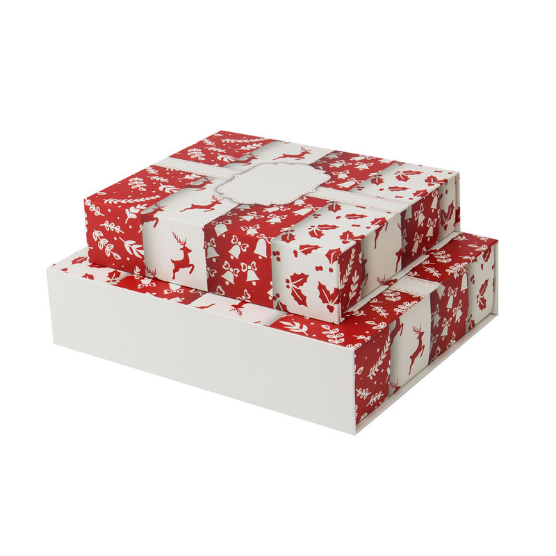 ক্রিসমাস রিবন কাগজ বাক্স ঢাকনা এবং বেস উপহার বাক্স কাস্টম ডিজাইন সিএমওয়াইকে মুদ্রণ