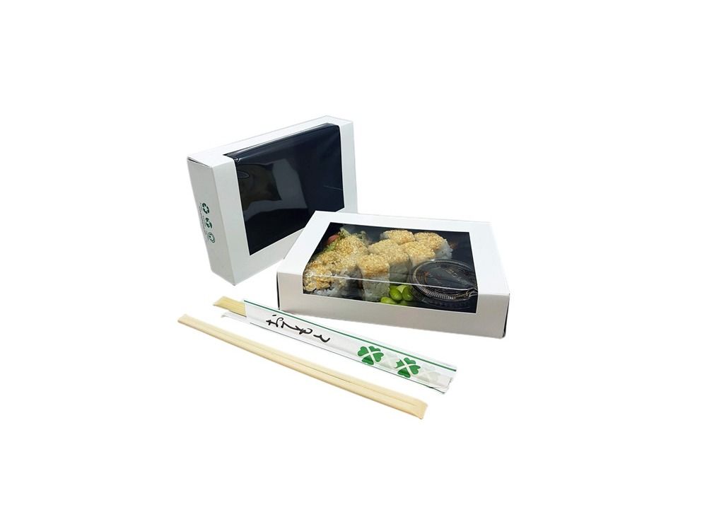 Customzied Logo 350gsm Ivory Paper Take Away Paper Sushi Box With Clear Window